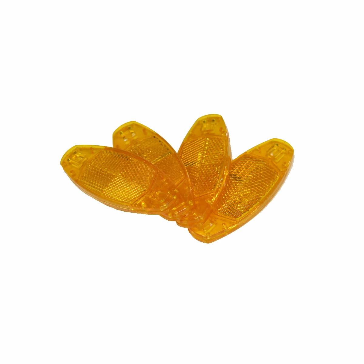 Les réflecteurs de rayons commerciaux approuvés par le StVZO / les yeux de chat à ”cliquer” sur les rayons. Avec un cran de sécurité, pour qu’ils adhèrent mieux aux rayons et ne se perdent pas.